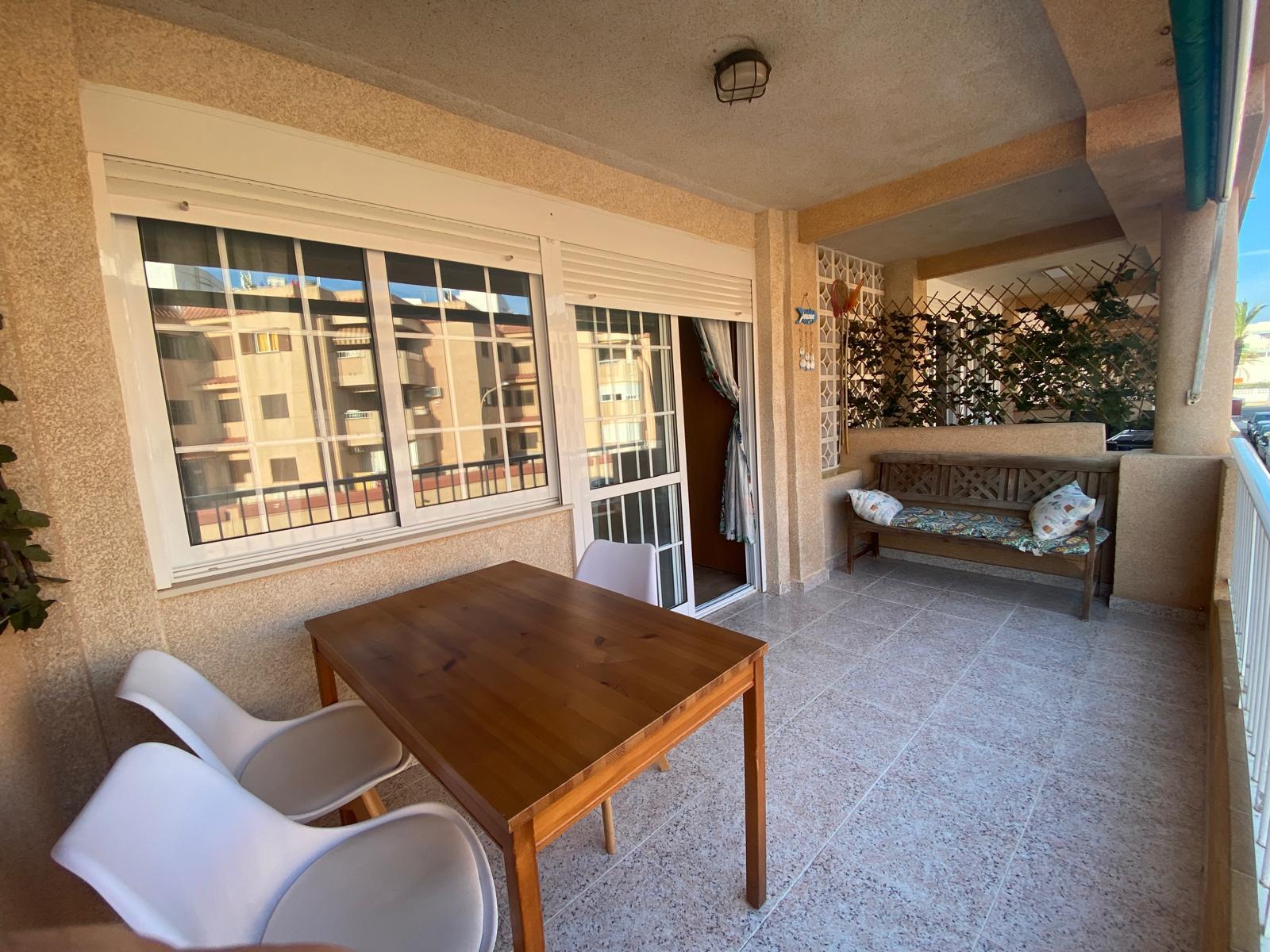 Piso en LA MANGA, con 80 m² construidos, 2 dormitorios, 1 baños, reformado, exterior, planta 1, 2 armarios, cocina equipada, amueblado, más de 30 años, zonas verdes, piscina comunitaria, aire acondicionado split, agua caliente individual, energía agua eléctrica, incluye agua, alta suministros realizada, suelo de gres, balcón